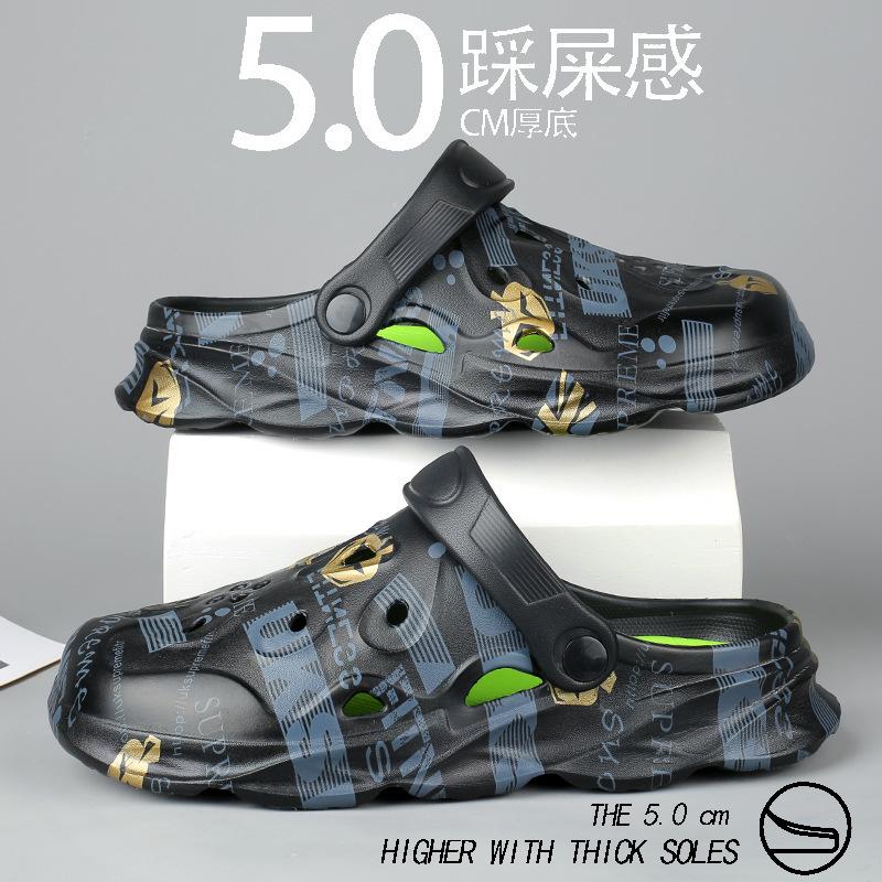 Мужские туфли с отверстиями 2024 года, летняя новая модная тенденция, нескользящие, двойного назначения, наступающие на дерьмо, повседневные пляжные туфли, классные тапочки 40/41