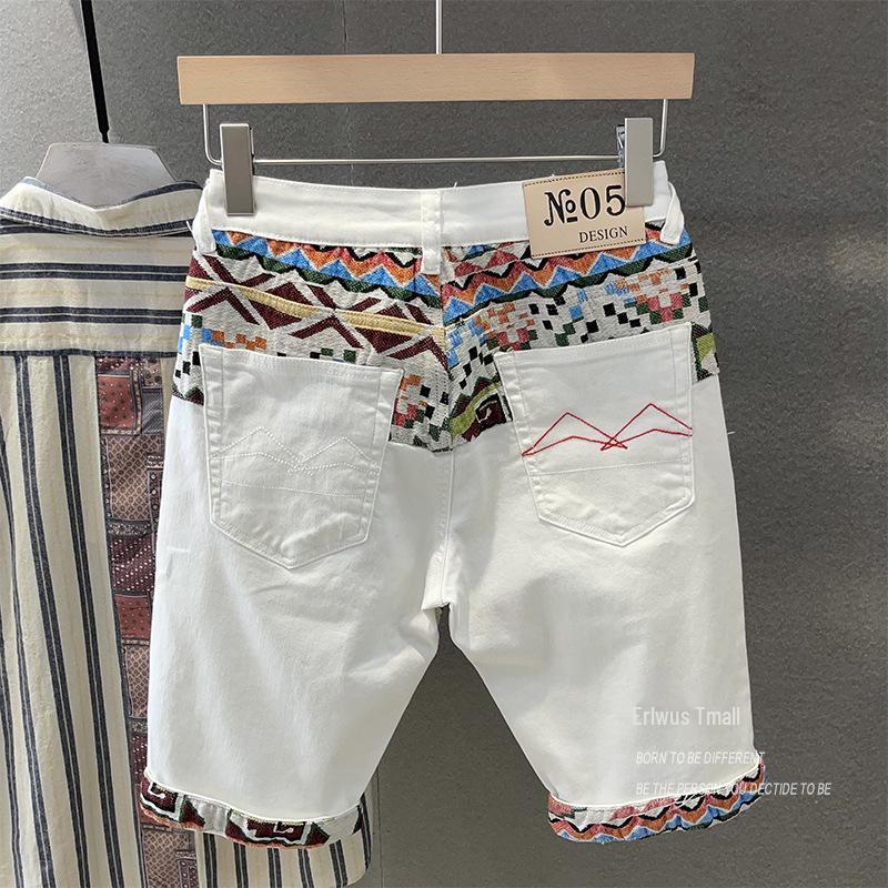 Мужские универсальные летние белые джинсовые шорты с вышивкой — модные, повседневные, эластичные, прямого кроя, с застежкой на пять точек. 32 белый