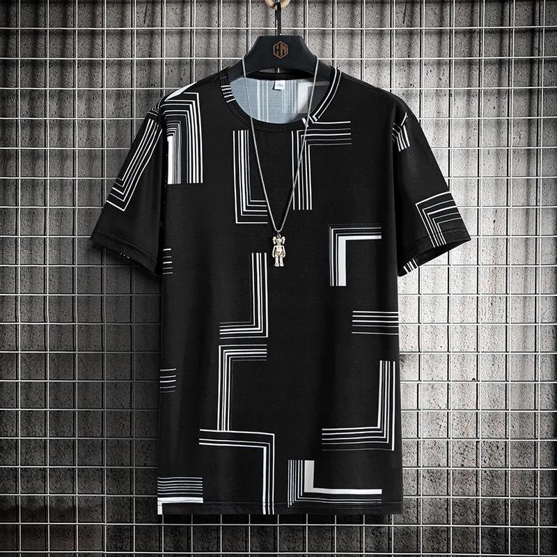 Мужские футболки из ледяного шелка, летние повседневные рубашки с круглым вырезом и короткими рукавами, большие футболки с геометрическим графическим принтом, мягкие дышащие классные топы M