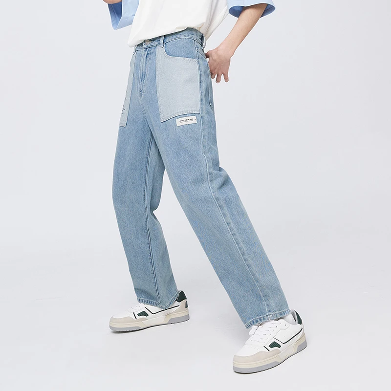 Мужские хлопковые джинсы, свободные прямые джинсы в Корейском стиле, летний сезон 2023