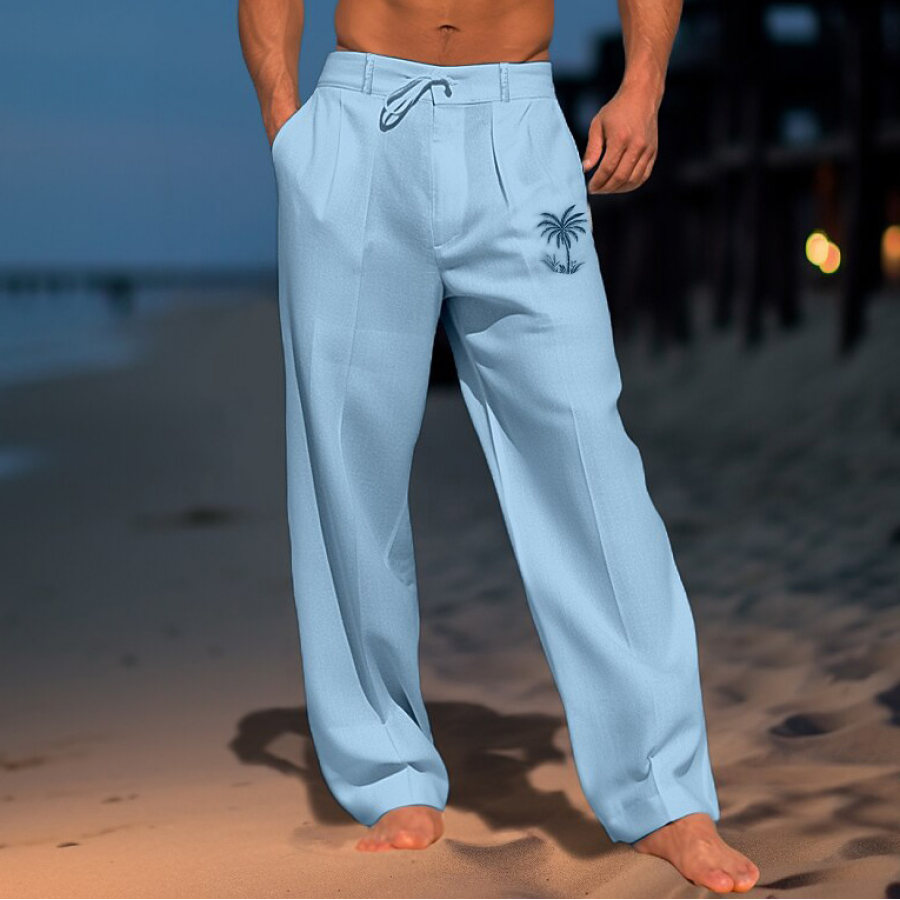 pants,мужские хлопковые льняные брюки с вышивкой кокосовой пальмы пляжный отдых кулиска повседневные повседневные гавайские штаны