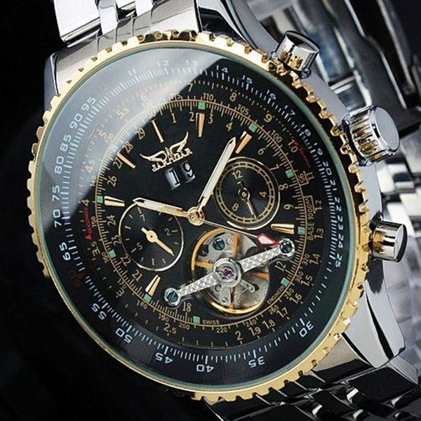 Роскошные мужские часы Марка JARAGAR автоматические механические часы турбийон часы из нержавеющей стали календарь водонепроницаемые часы RelogioBack к деталям продукта