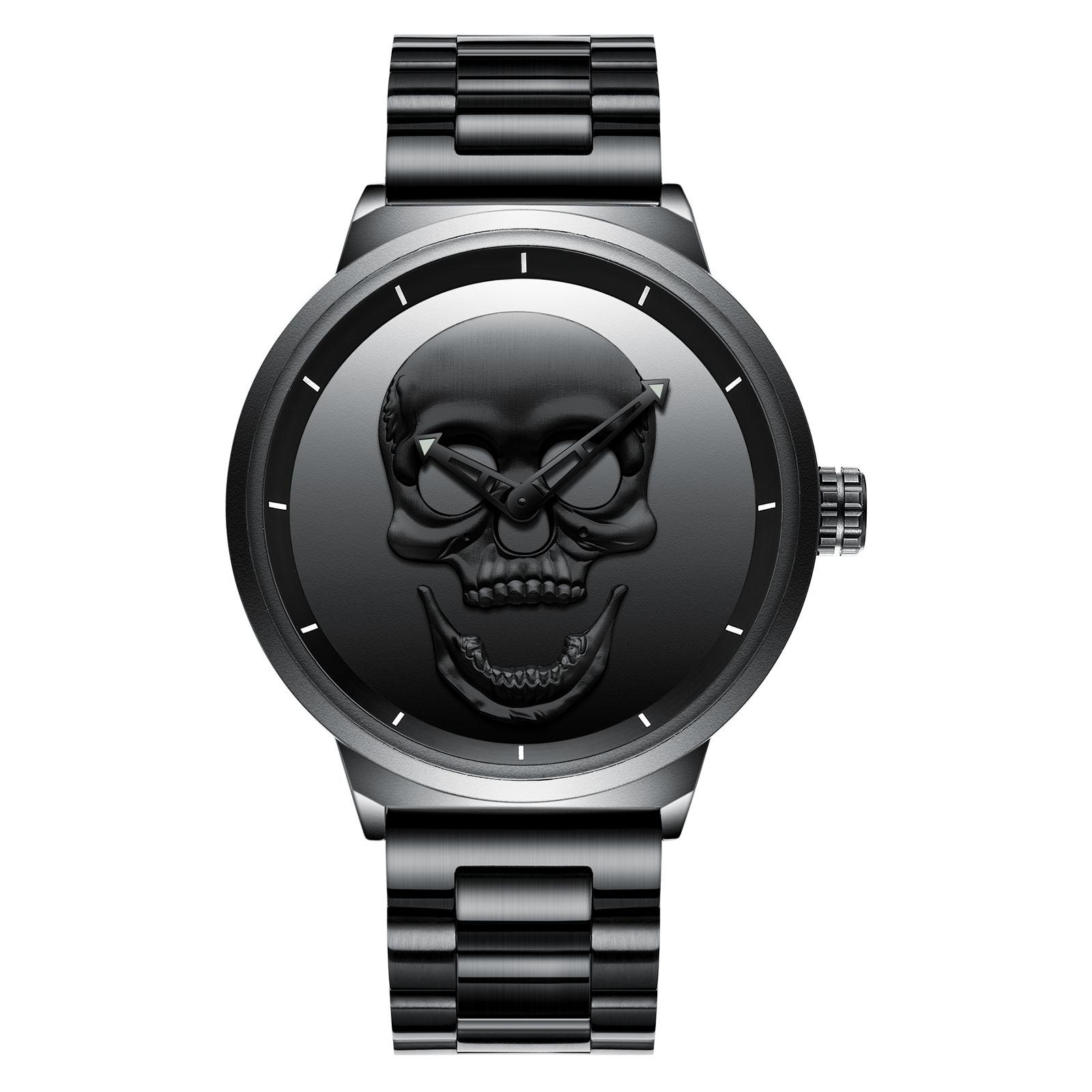 Мужские часы со стальным ремешком и черепом, персонализированные мужские часы, водонепроницаемые, модные кварцевые часы