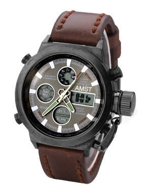 Наручные часы оснащены оригинальным кварцевым механизмом Japan movt (Япония). Его погрешность +- 40 секунд в месяц. Сбоку на корпусе есть регулятор аналоговых стрелок. Чтобы нечаянно его не задеть, он спрятан под специальной крышкой на резьбе. Несмотря на наличие классических аналоговых стрелок, электронная начинка часов AMST содержит ряд полезных функций: