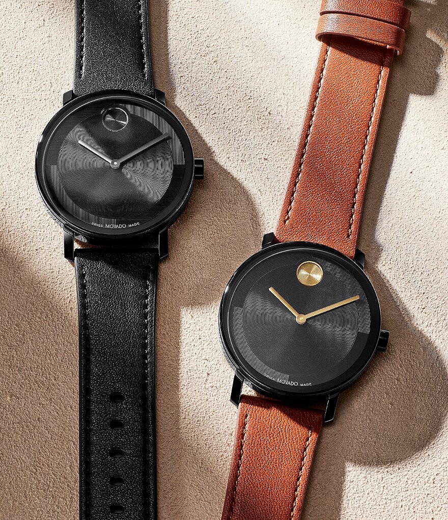 Мужские часы Movado Bold Evolution 2.0 с аналоговым кварцевым черным кожаным ремешком, черный