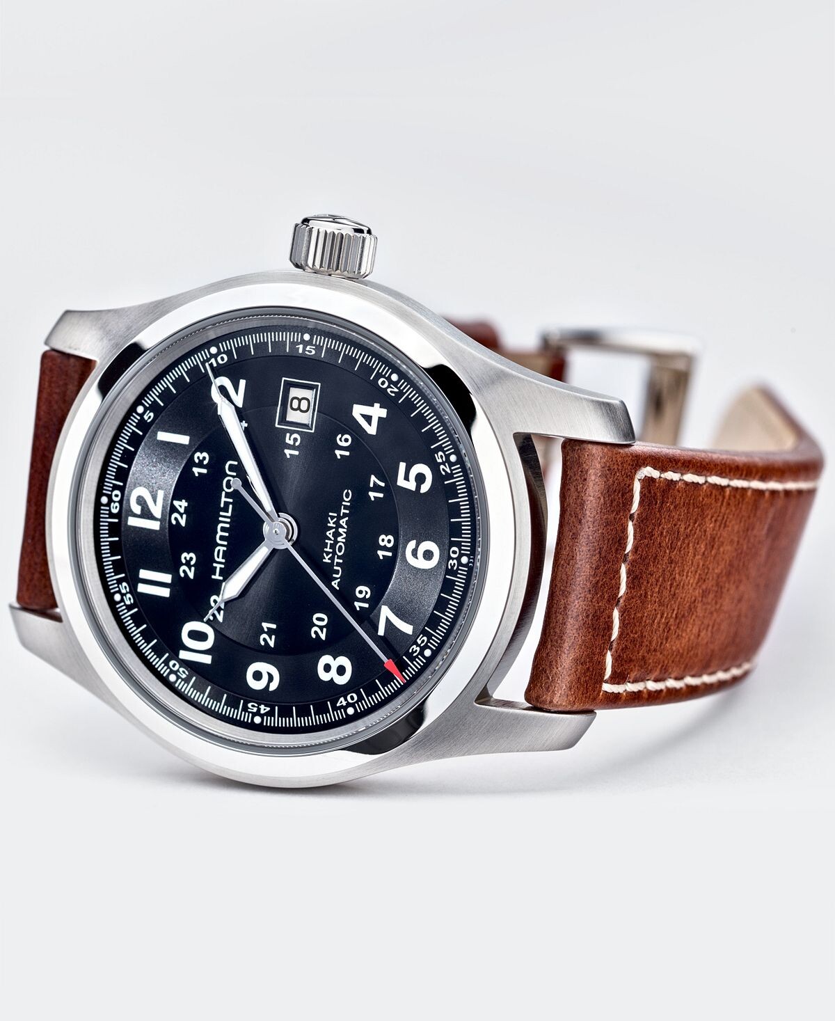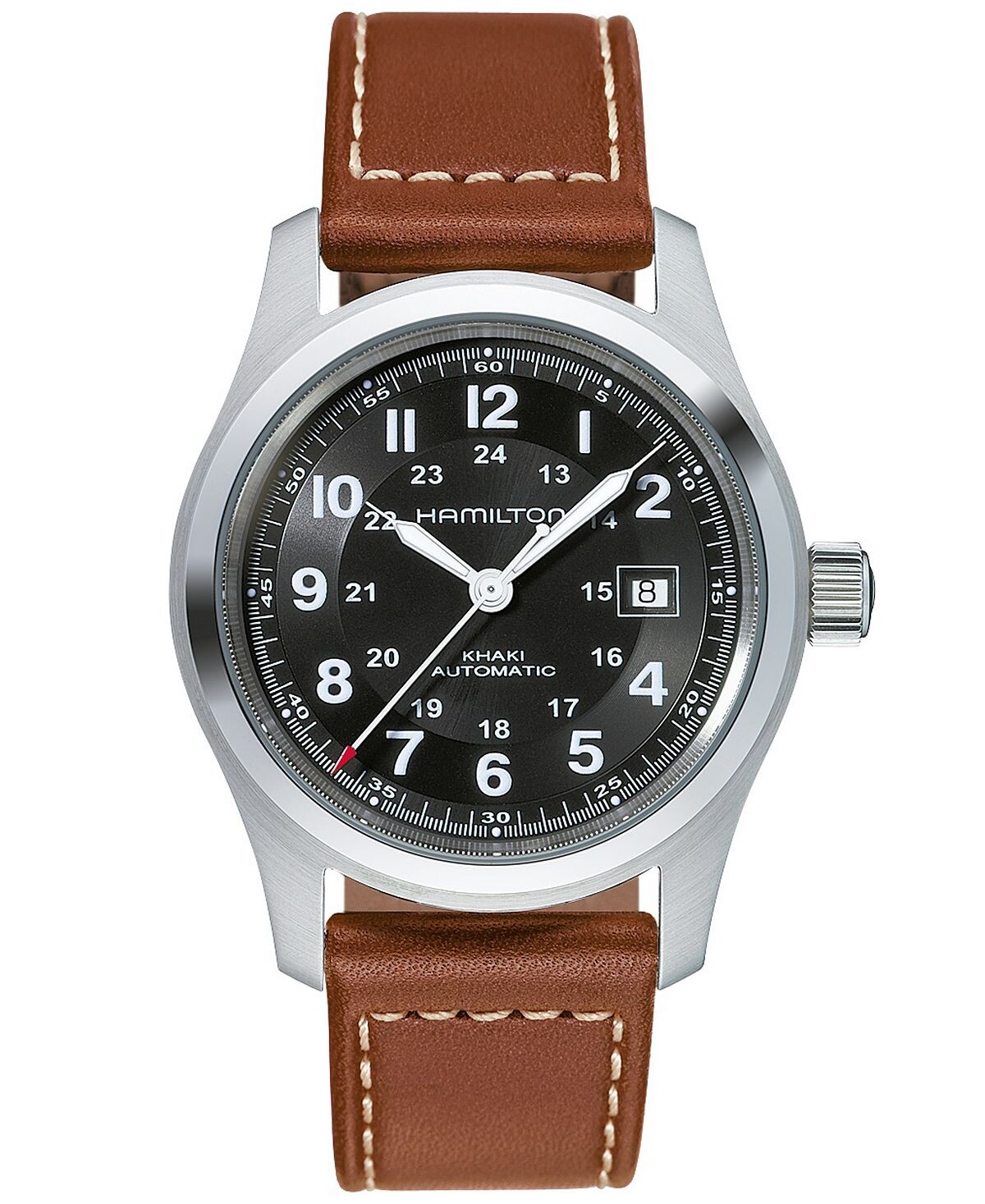 Мужские швейцарские автоматические часы цвета хаки с коричневым кожаным ремешком, 42 мм, H70555533 Hamilton