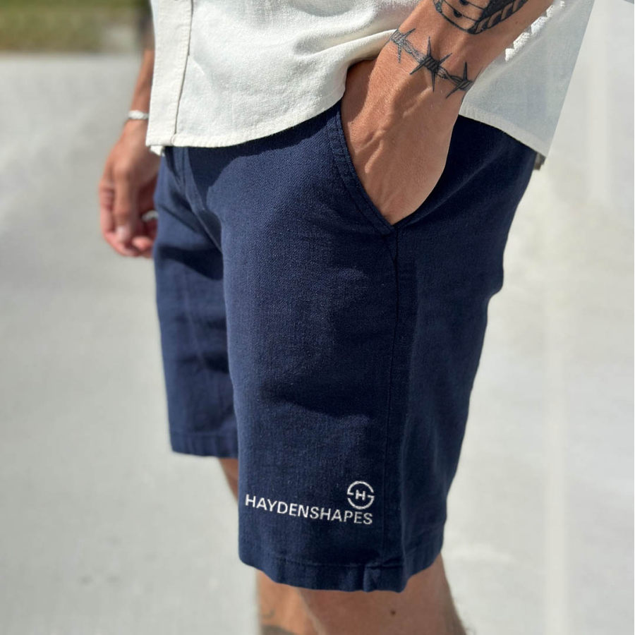 Мужские шорты для серфинга Ретро Hs с принтом доски для серфинга хлопковые и льняные пляжные повседневные шорты для повседневного использования