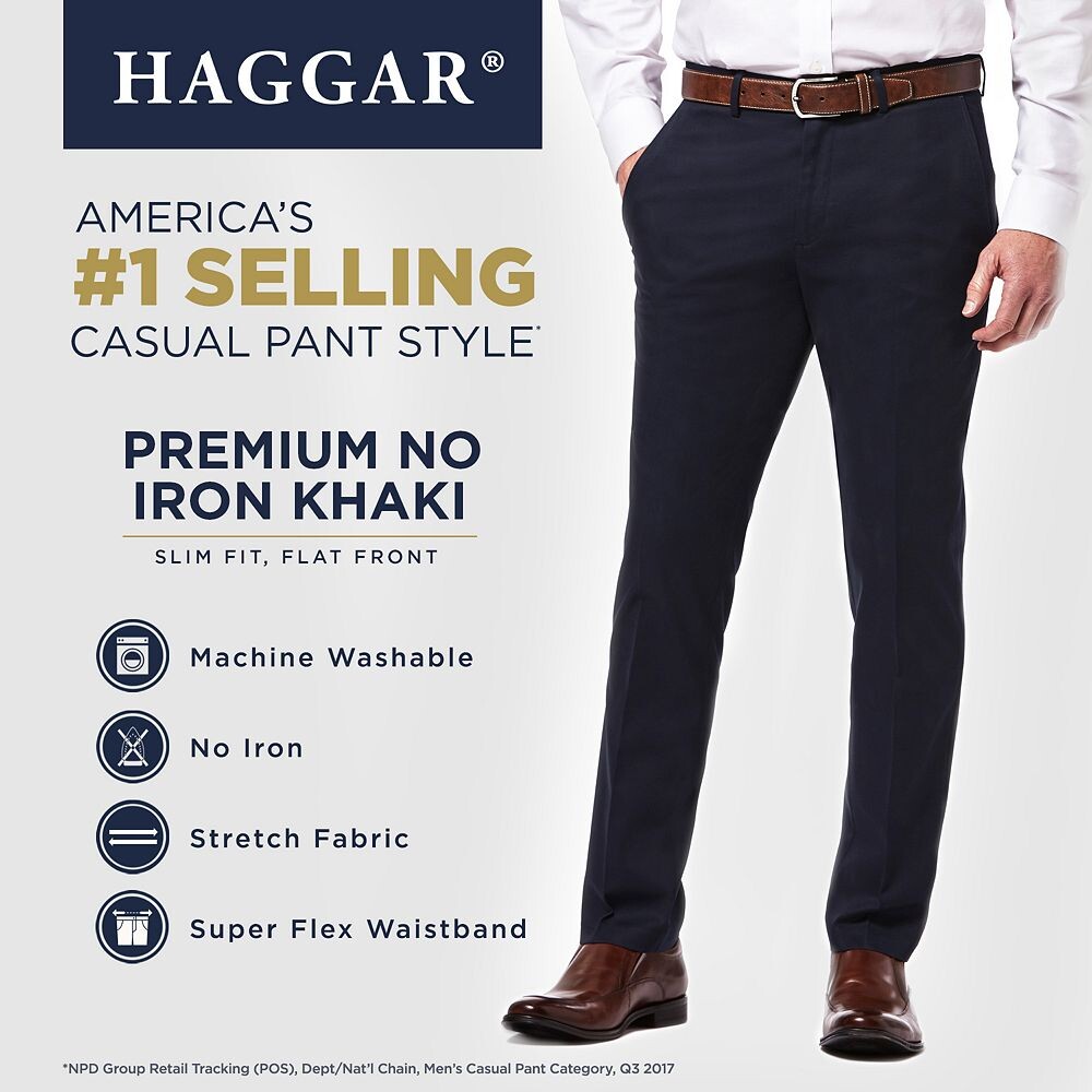 Мужские эластичные брюки с плоской передней частью и гибкой талией Haggar Premium No-Iron цвета хаки, цвет Dark Navy