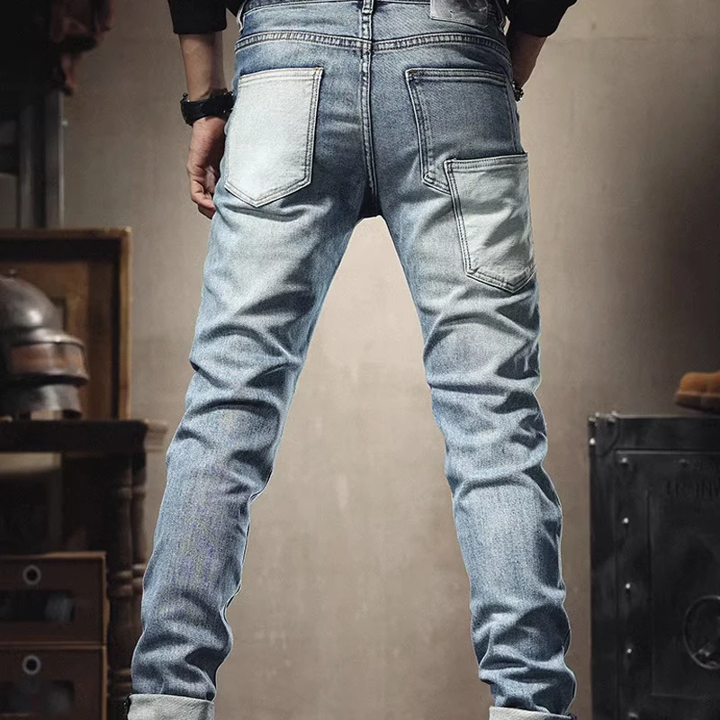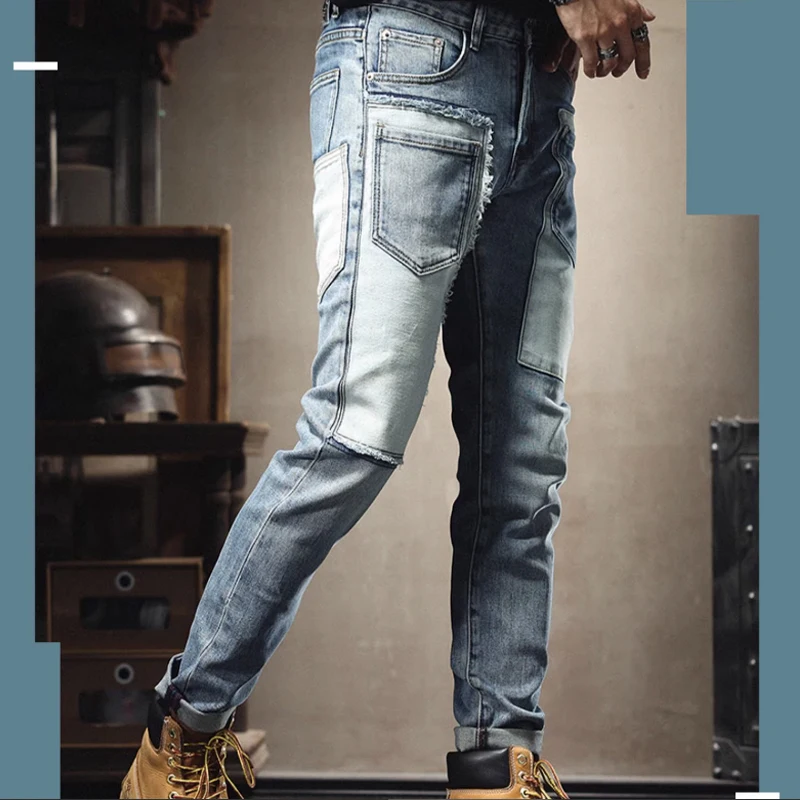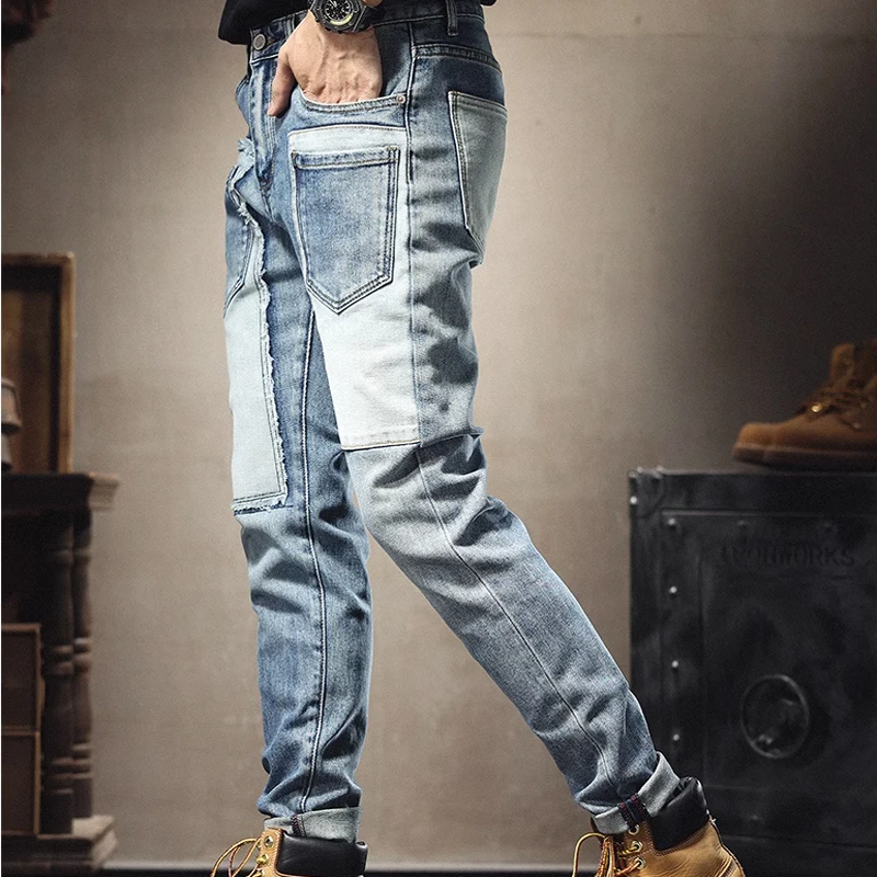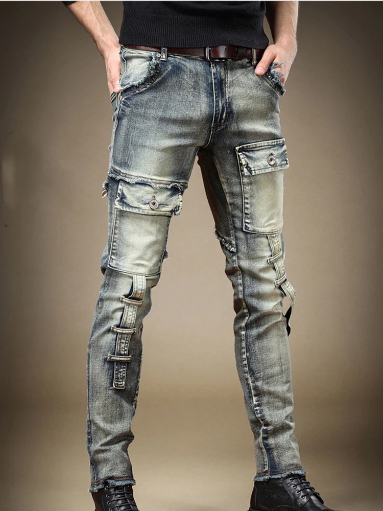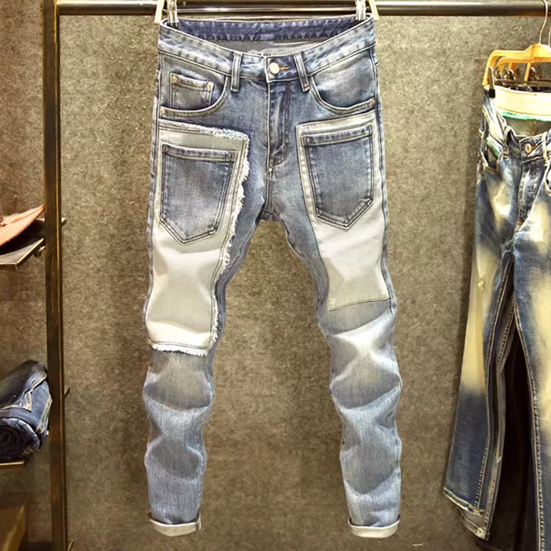 Мужские эластичные джинсы, синие облегающие байкерские брюки из денима в стиле High Street, осень 2023