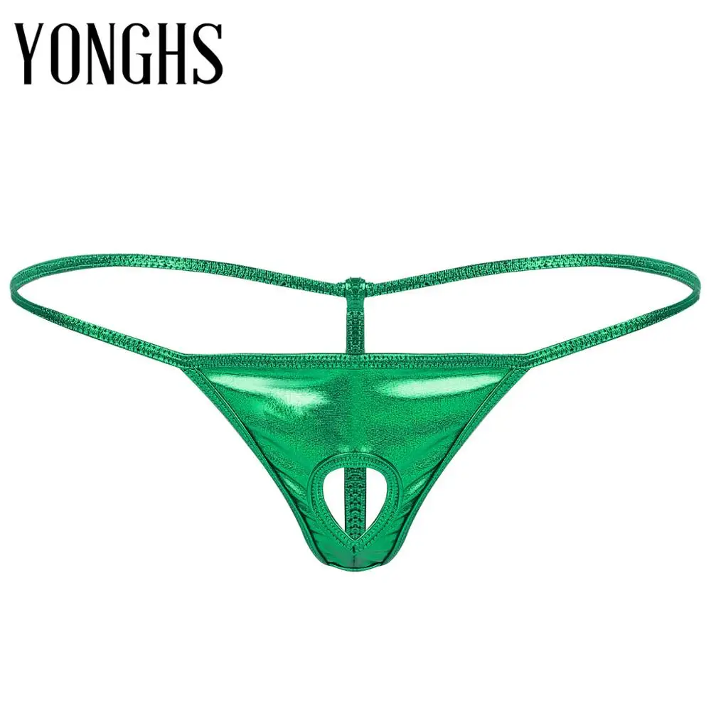 Мужское блестящее металлическое нижнее белье, сексуальные трусики с низкой посадкой спереди с отверстием для пениса, стринги с открытыми я...