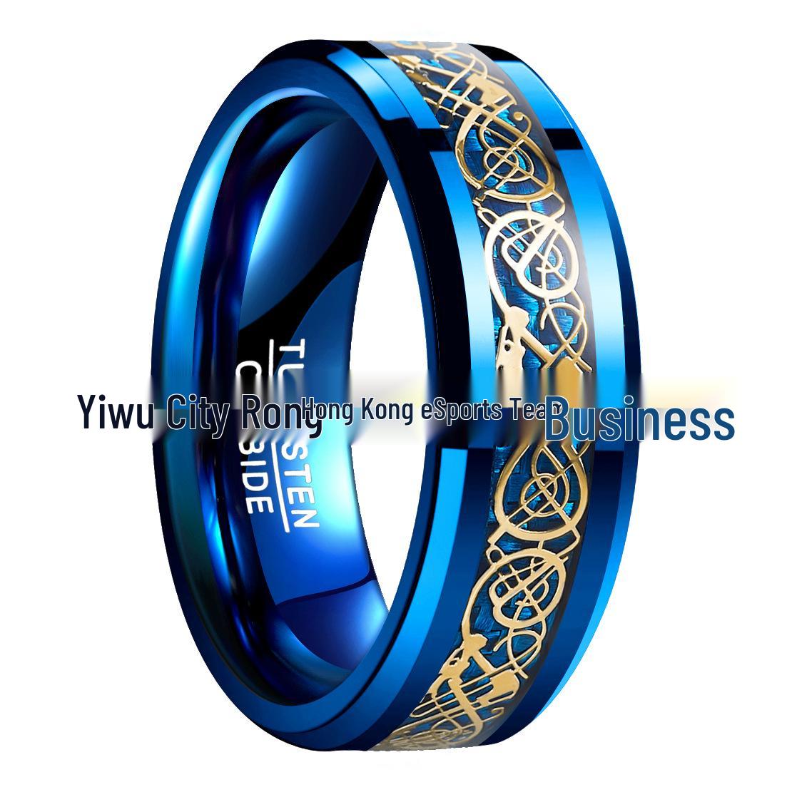 Мужское кольцо из вольфрамовой стали с синим пятном и узором из золотой проволоки, ширина 8 мм 14 синий