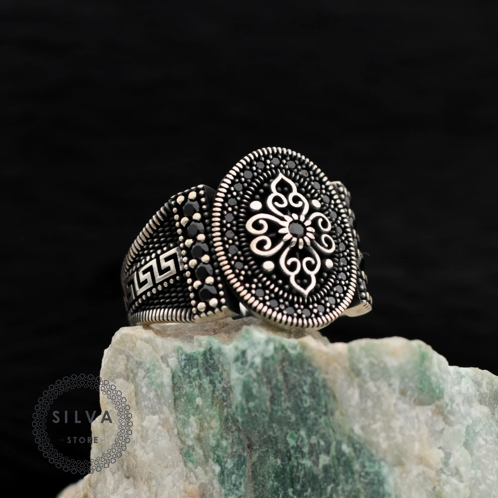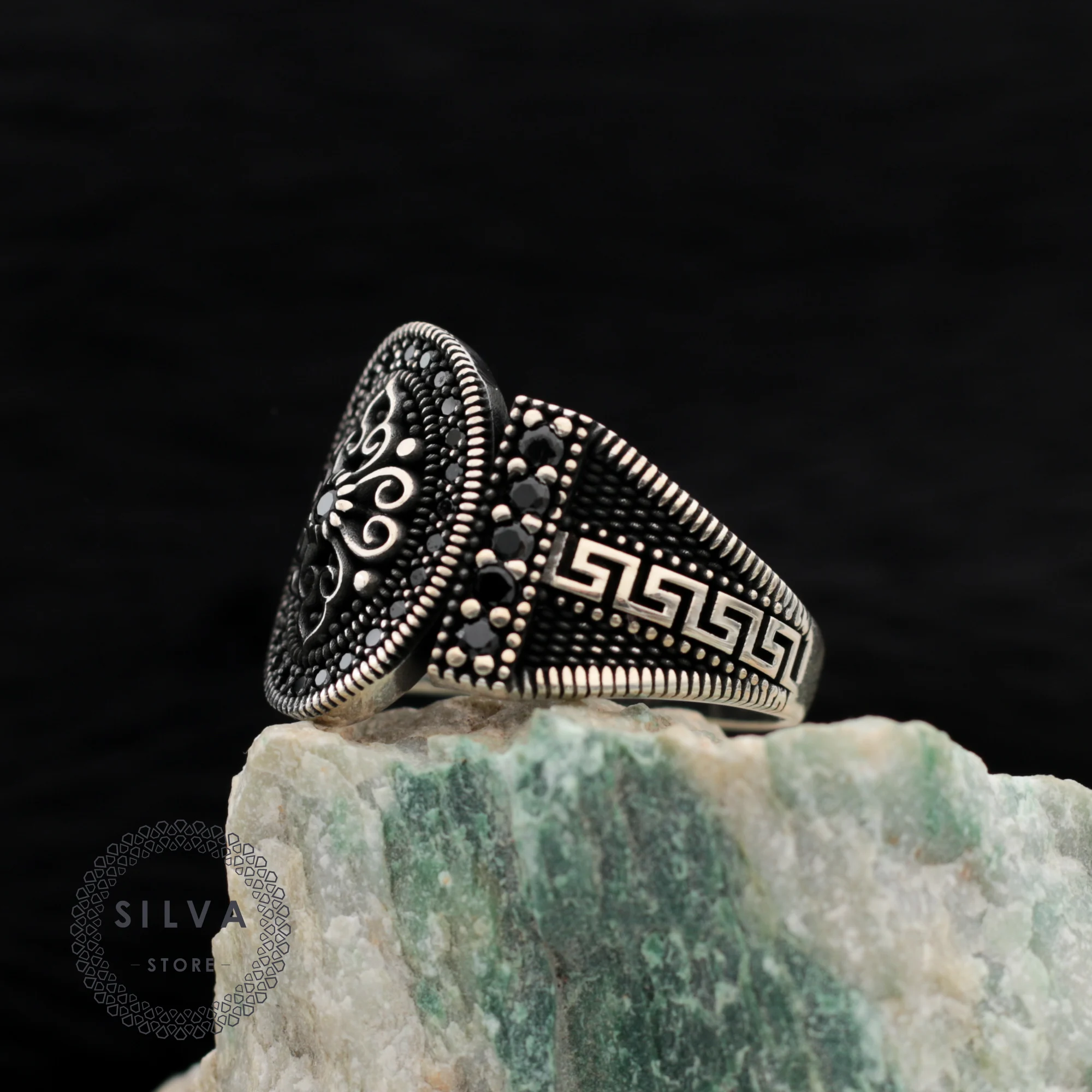 Мужское кольцо из серебра 925 пробы с фианитами. Турецкий мужской ювелирный подарок