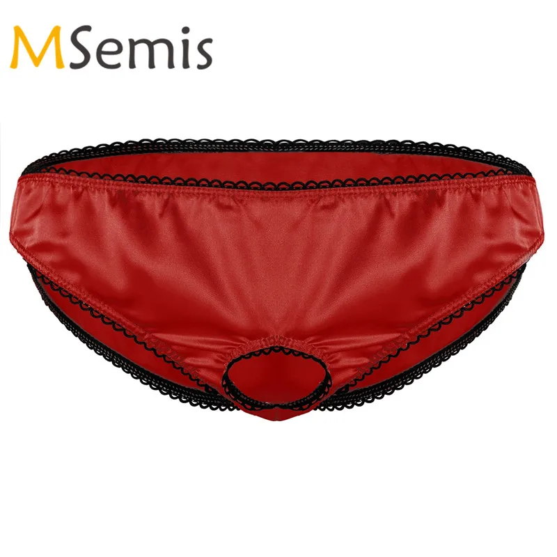 Мужское нижнее белье с отверстием для пениса, атласные трусы-бикини с отверстием спереди и низкой посадкой для пениса