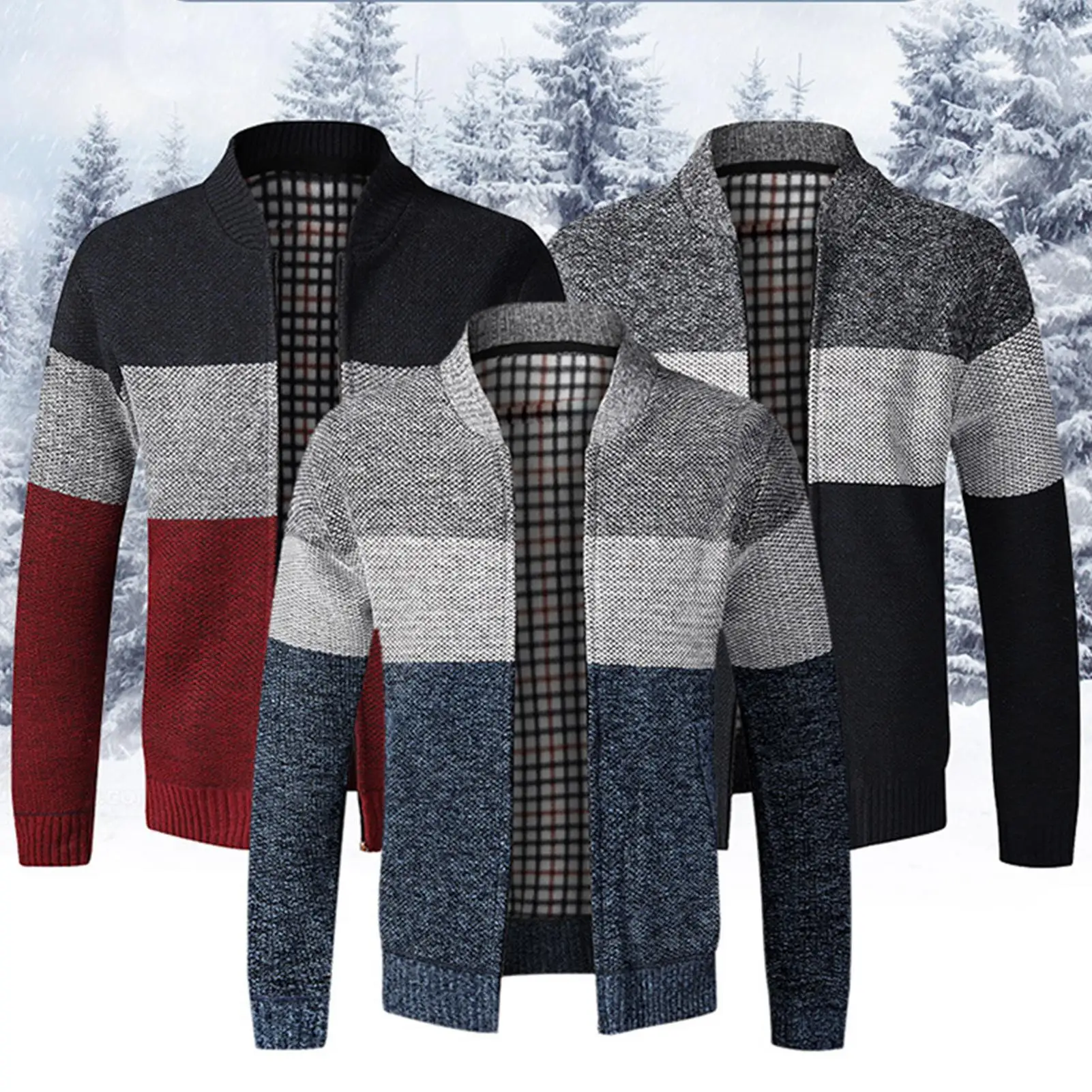 Мужское плюшевое пальто с длинным рукавом и воротником-стойкой