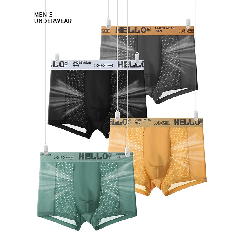 Мужское сексуальное нижнее белье из ледяного шелка, дышащие удобные тонкие боксеры с вырезами, бесшовные боксеры, шорты, нижнее белье
