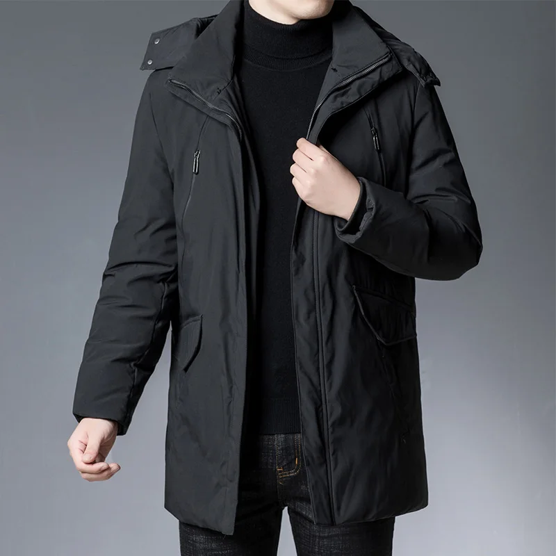 Мужское теплое пальто с капюшоном, черное или хаки Пальто со съемным капюшоном, теплая верхняя одежда, зима 2022