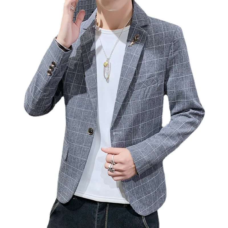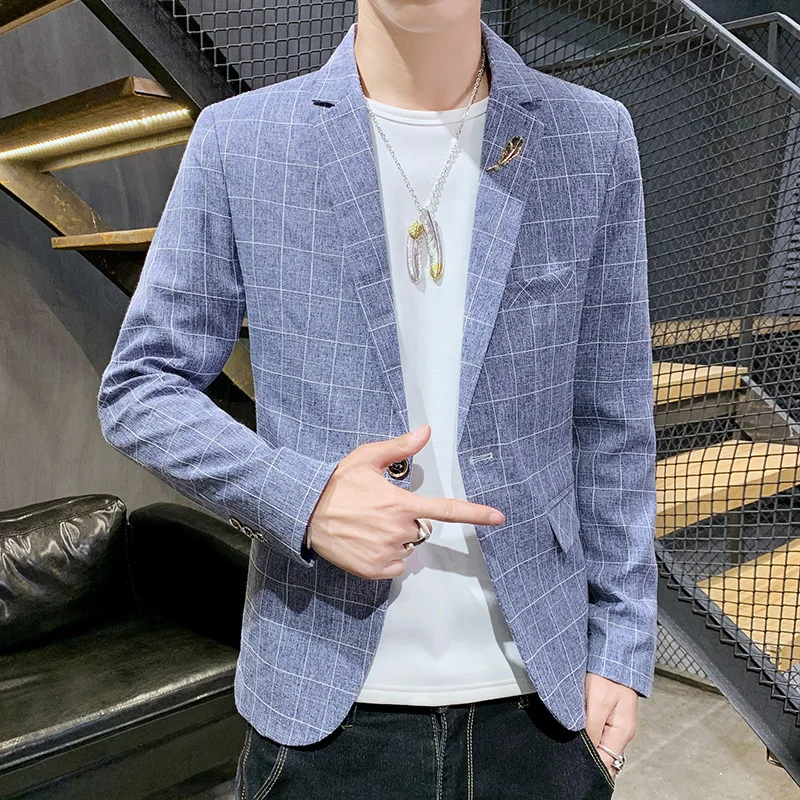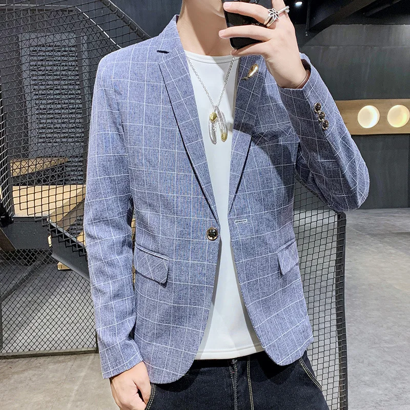 Мужской Блейзер, Повседневный, модный, приталенный, в клетку, на одной пуговице, 2021