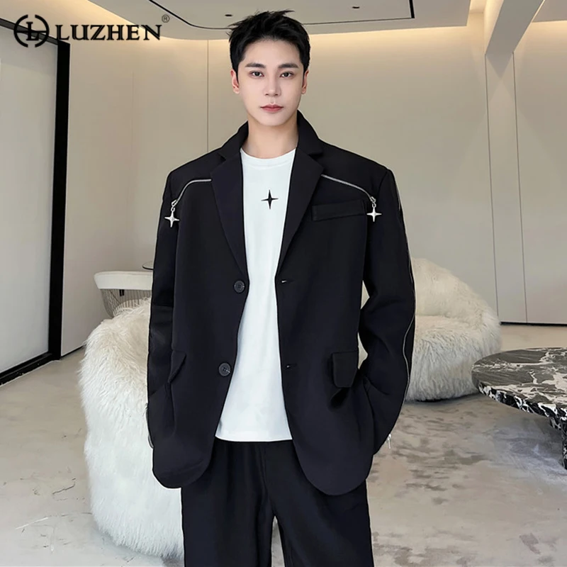 Мужской Блейзер LUZHEN, модный Индивидуальный Блейзер на молнии, повседневный костюм, пальто, нишевой дизайн, куртки в Корейском стиле, осень 0b3c2e