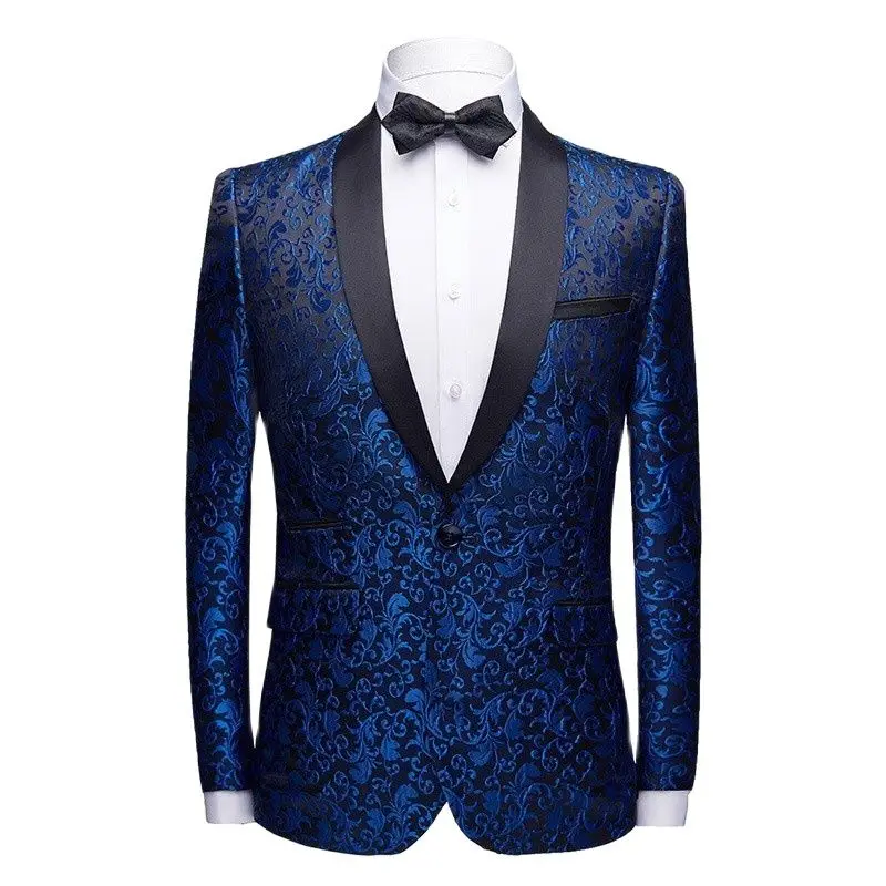 Мужской Жаккардовый пиджак с цветочным принтом, приталенный пиджак с отворотом для джентльмена, мужской костюм для вечерние, 2021