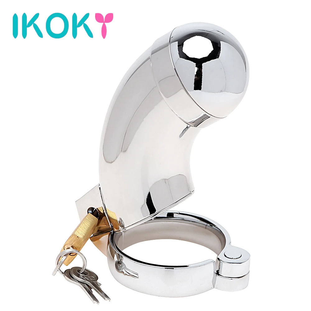 Мужской Пояс верности IKOKY, клетка для пениса, кольцо на пенис, манжета из нержавеющей стали, секс-игрушки для взрослых для мужчин, Эротически...
