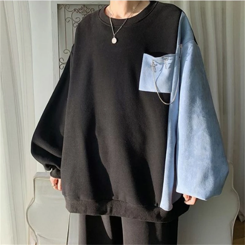 Мужской Свободный пуловер, повседневный свитшот с круглым вырезом, в стиле пэчворк, весна-осень 2023