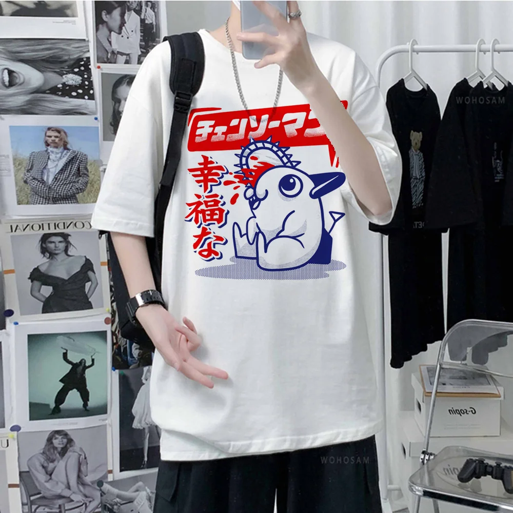 Мужской Топ с принтом бензопилы, мужской топ с забавным принтом манги, мужская Японская одежда для манги