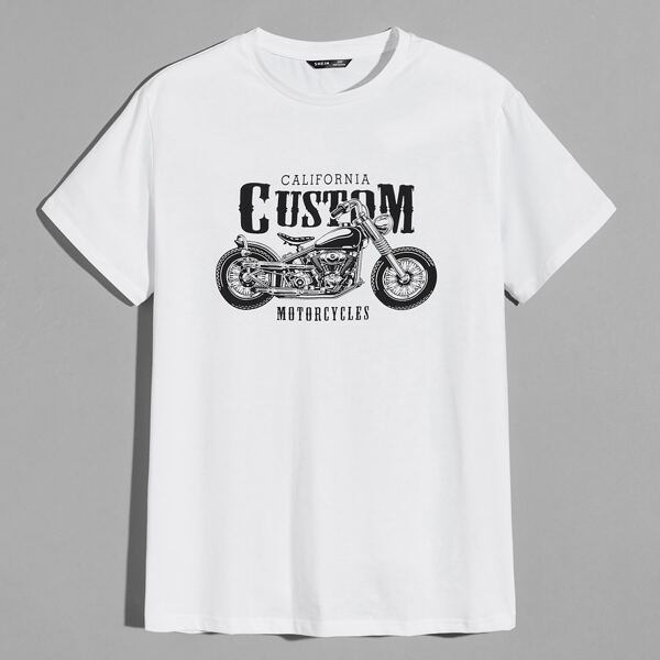 Мужской Футболка буква & мотоцикла принтом, Белый