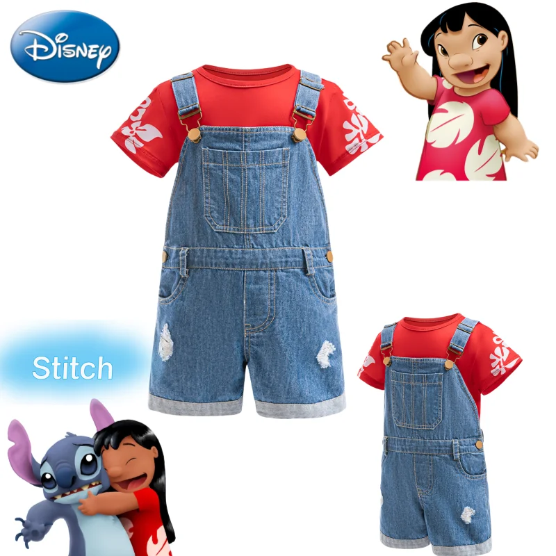 Disney Lilo & Stitch anime peripherals Halloween cosplay Lilo girls daily bib cartoon cute short sleeve two-piece set wholesale