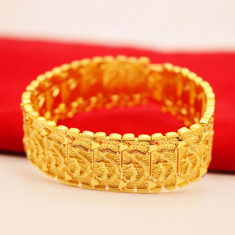 Мужской браслет с рисунком дракона, классический плотный браслет с желтым золотом, крутой браслет с цепочкой, 8,26 дюйма
