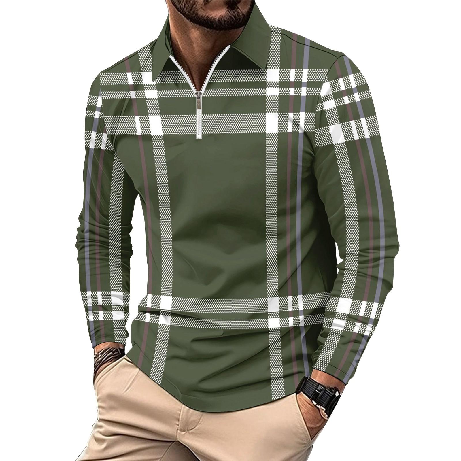 Мужской весенний клетчатый топ с полумолнией и лацканами, длинный рукав, мужские повседневные модные топы M
