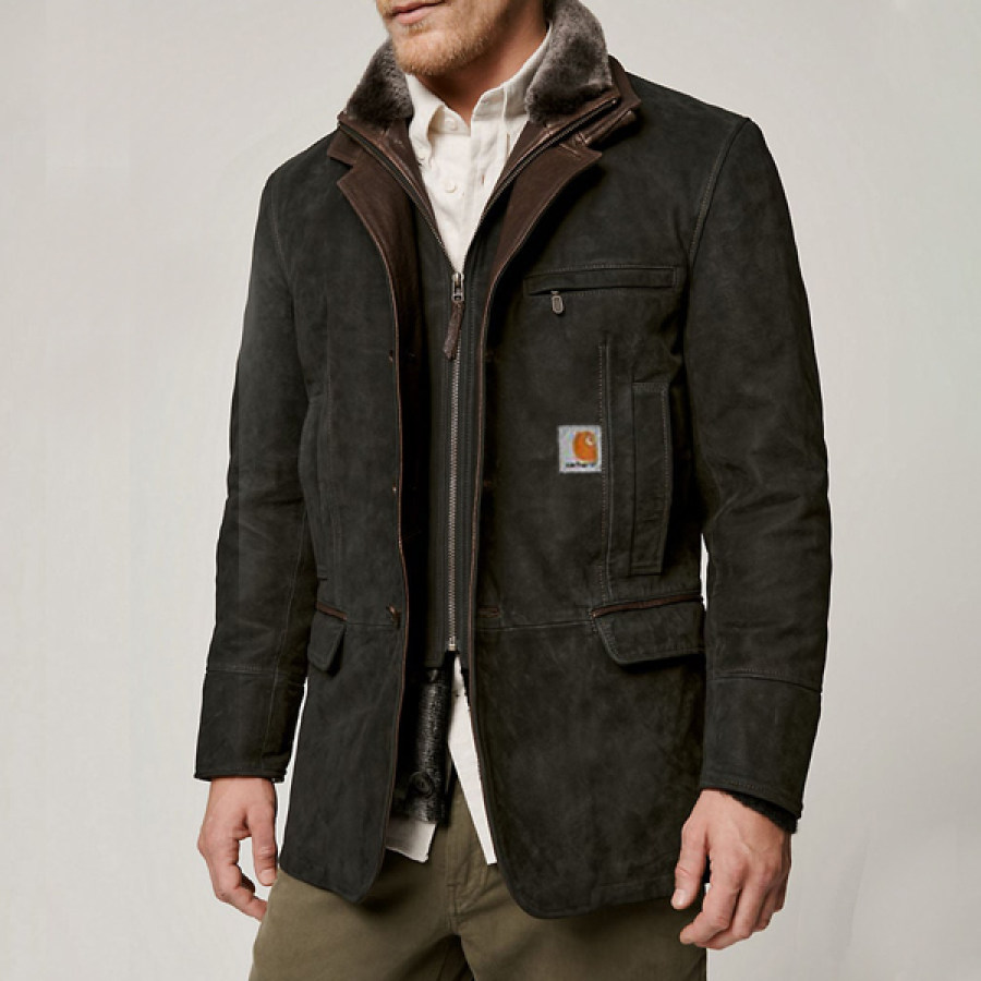Simple Fashion Sheepskin Windbreaker Mens Real Leather Jacket and Coats Plus Size 4XL Men Velvet Padded Winter Trench Coat Brand