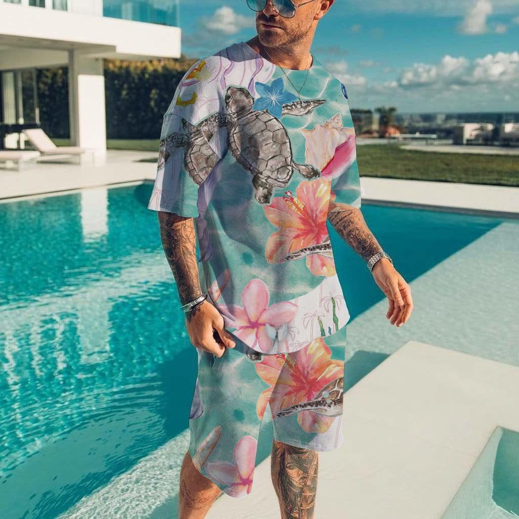 Мужской гавайский костюм с принтом, повседневная футболка, пляжные брюки, повседневный стильный мужской топ с коротким рукавом, новые мужские футболки, комплект из двух предметов 6XL