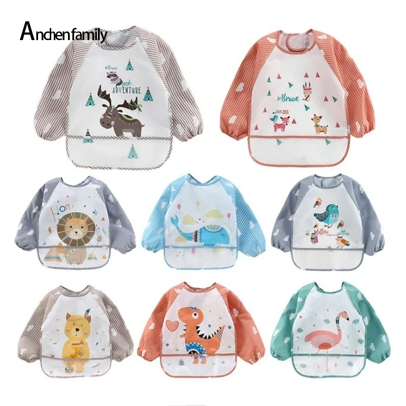 Детский непромокаемый слюнявчик для мальчиков и девочек, тканевый слюнявчик, нагрудник-банан с карманами, детский шарф с длинным рукавом, детский мультяшный Слюнявчик