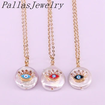 10Pcs 16mm Charm Nature Pearl Micro Pave Zircon eye Jewelry Pendant Necklace Gold Color Chain Gift for Women