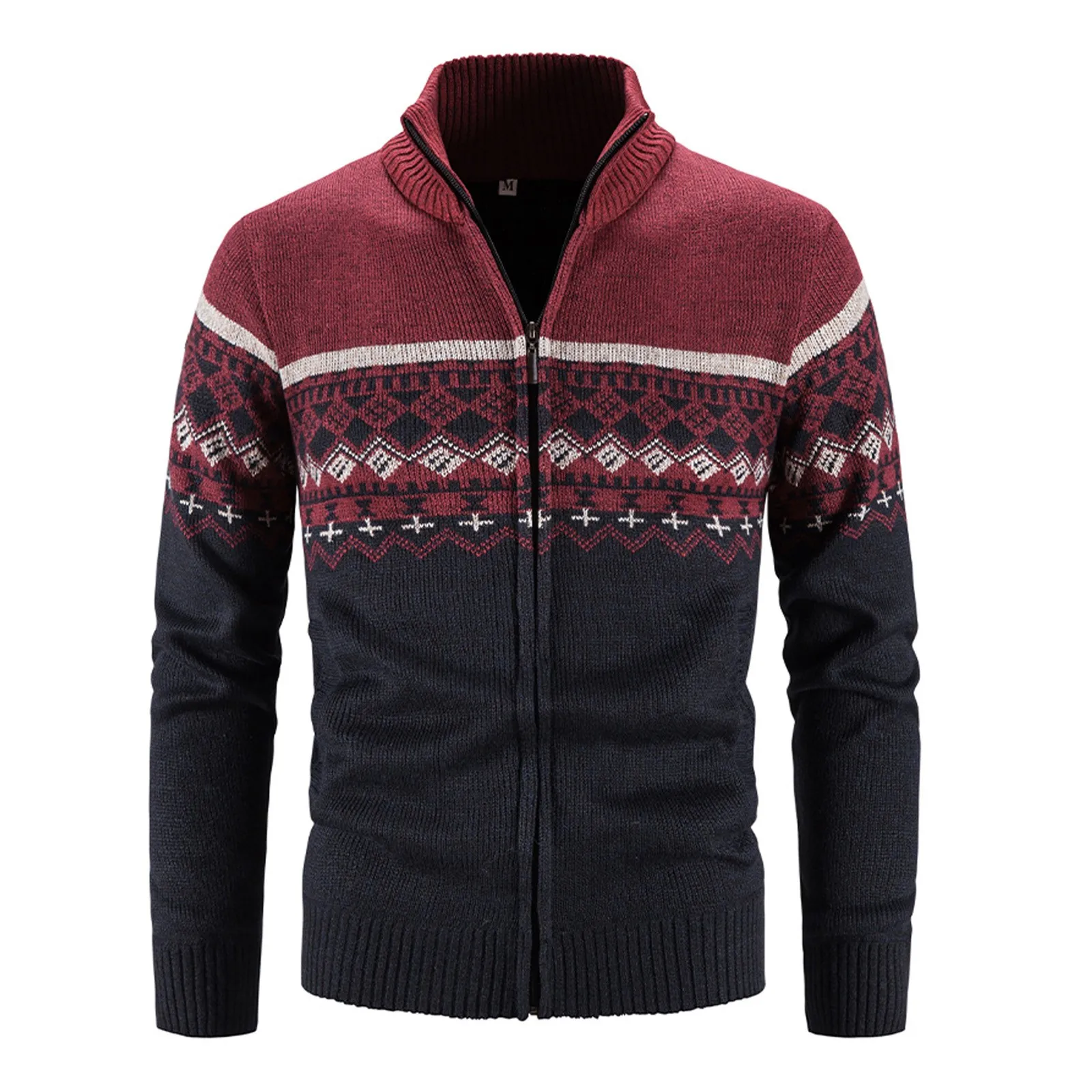 Мужской зимний клетчатый кардиган с длинным рукавом, с бархатной подкладкой