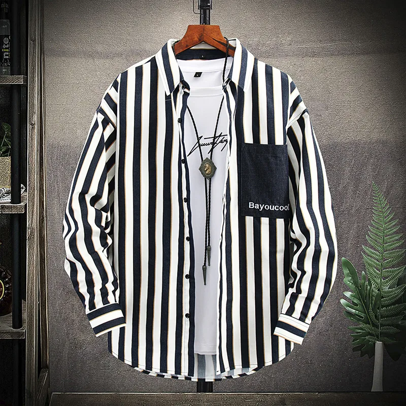 Мужской кардиган с длинными рукавами, Повседневная рубашка в полоску с квадратным вырезом и буквенным принтом