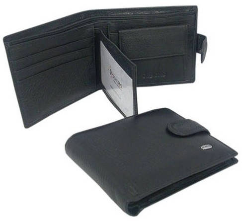 Портмоне на клапане с 3 отделениями под банкноты (1 змейка), внутри – откидной блок для удостоверения, монетница, 3 больших кармана, 4 кармана для визиток. Размер (см) 11,5*9,5*2. Поставляется в фирменной коробке.