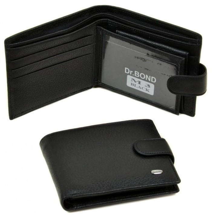 Мужской кожаный кошелек портмоне Dr.Bond натуральная кожа, Черный