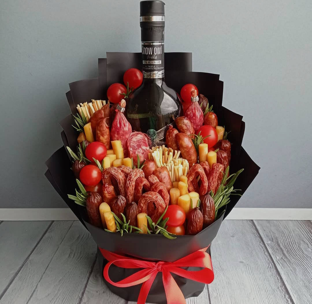 Только представьте, какие эмоции овладеют мужчиной, когда он увидит перед собой вкусный сыро-колбасный, рыбный букет или «1001 клешню». Такой роскошный подарок он не сможет съесть в одиночестве и наверняка с удовольствием поделится с Вами или со своими друзьями. К тому же презент станет замечательной закуской! Его можно сразу же подавать на стол.