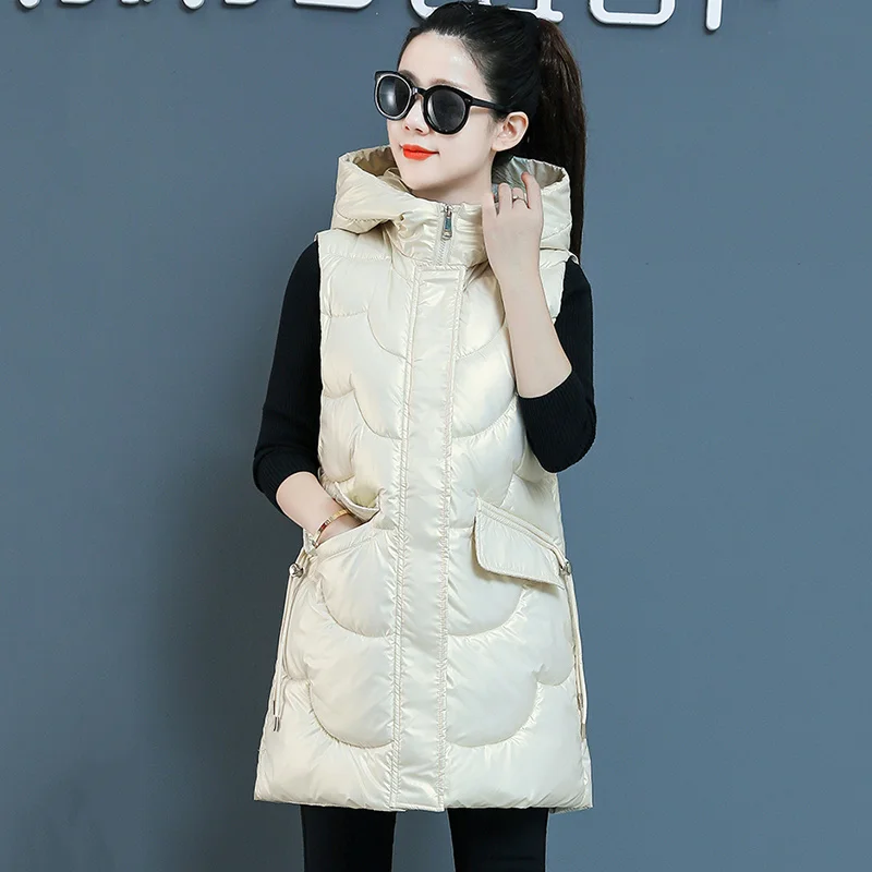 2023 New Autumn Winter Waistcoat Vest Women Overcoat Long Waistcoat Cotton Vest Loose Down Cotton-Padded Waistcoat Jacket Female