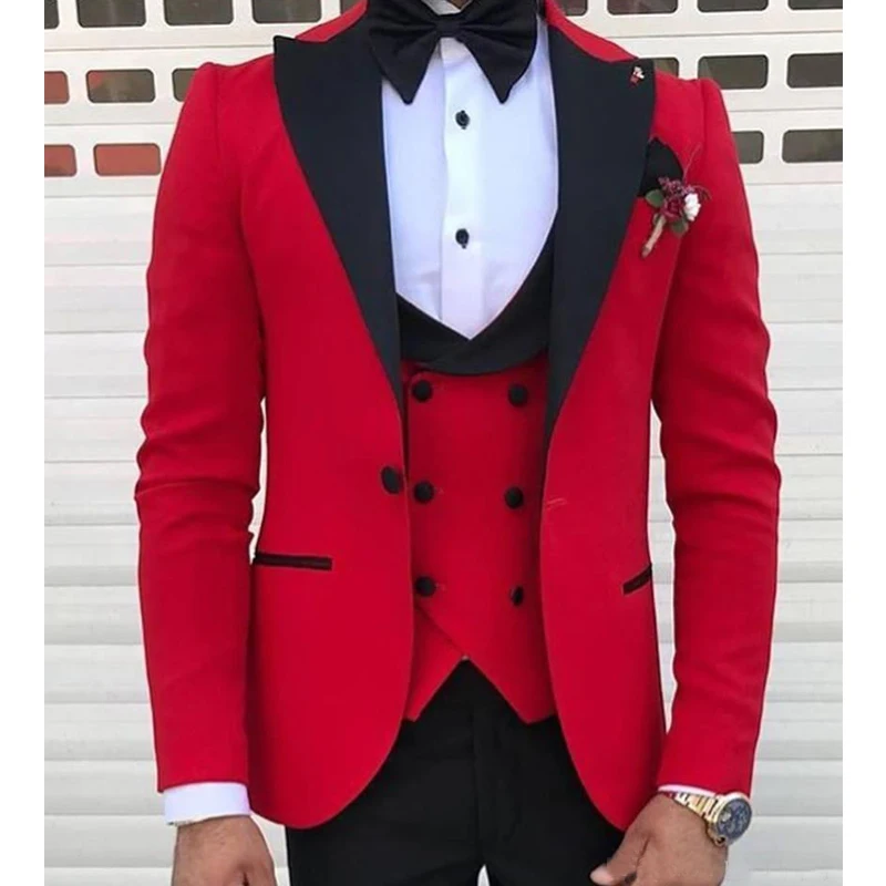 Мужской костюм из трех предметов, черный атласный смокинг для жениха с заостренным лацканом, модный двубортный жилет и брюки