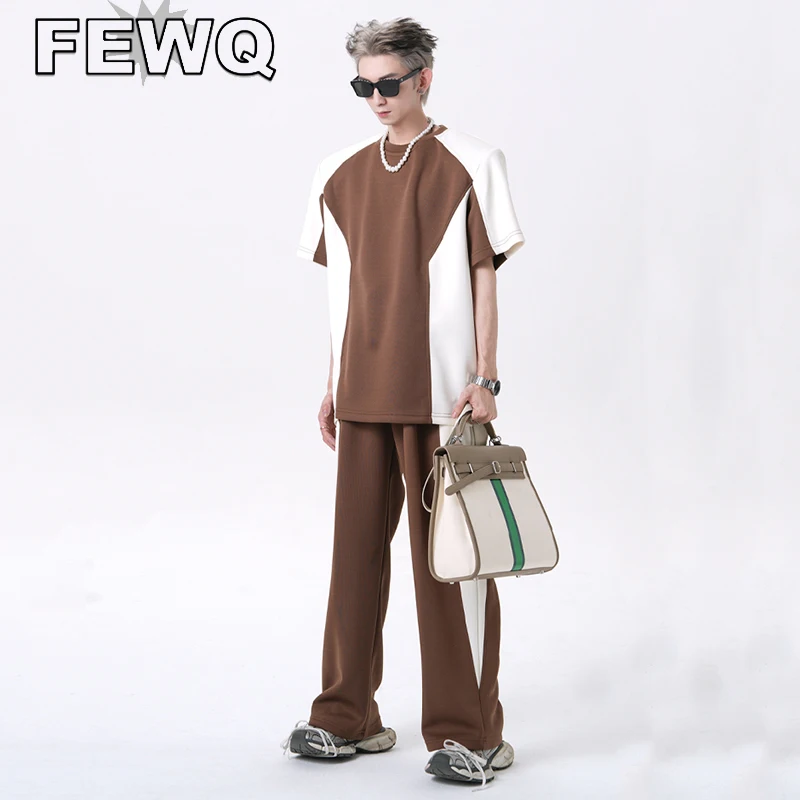 Мужской костюм из футболки и брюк с коротким рукавом, с широкими штанинами
