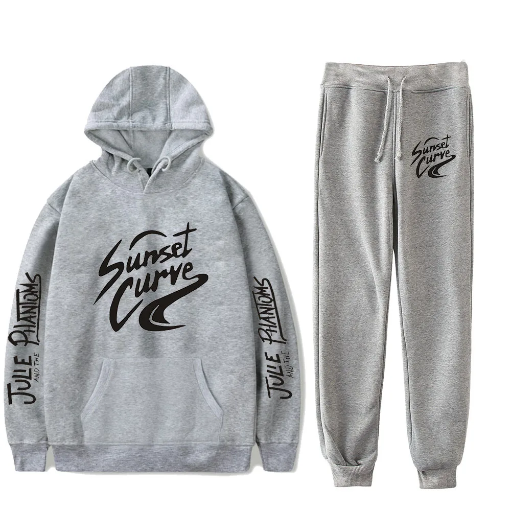 Мужской костюм с капюшоном Julie and the Phantoms, толстовка с капюшоном и штаны для бега, уличная одежда в стиле Харадзюку с изгибом заката, 4XL