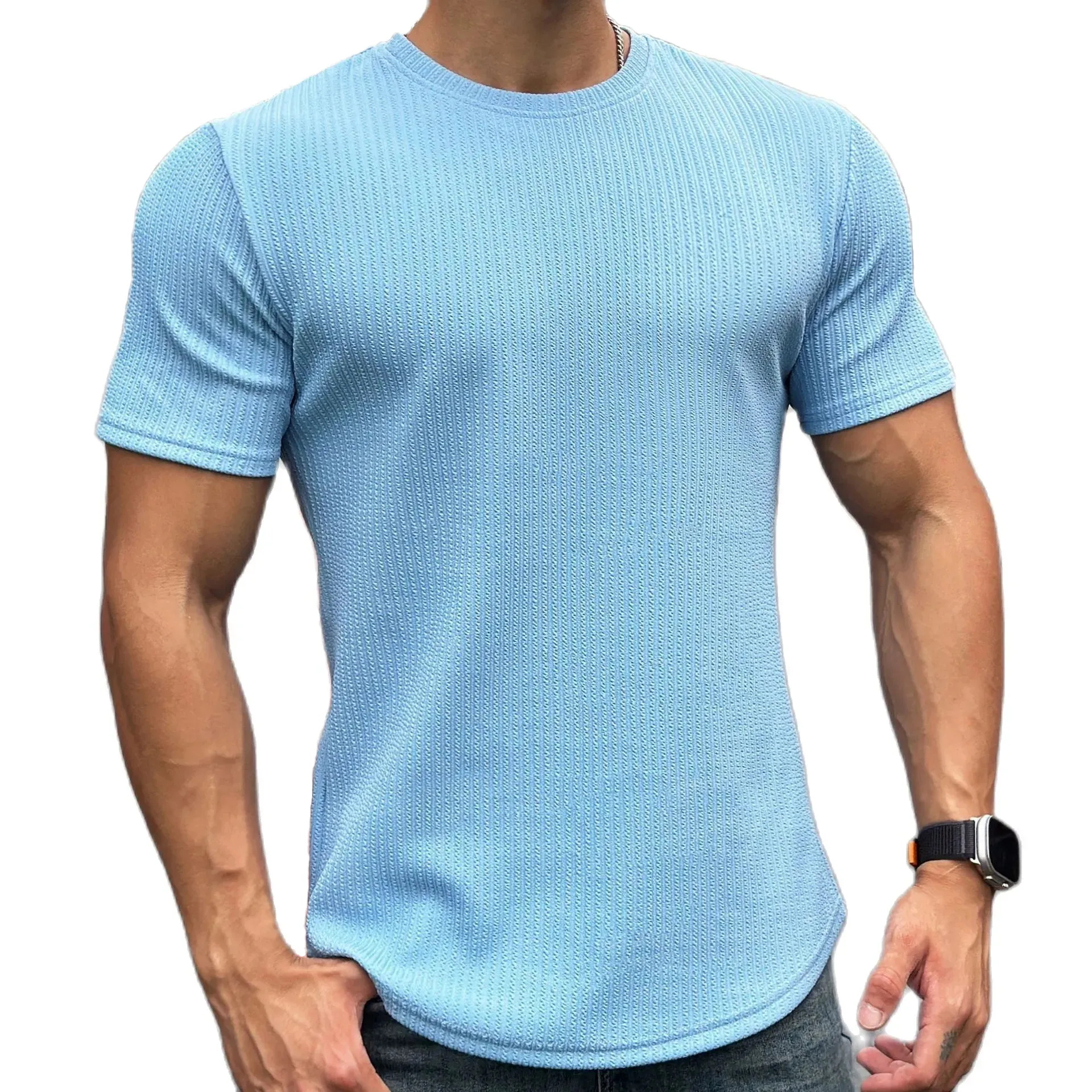 Solid Stripe Running Sport T-shirt Men Gym Fitness Slim Shirt Short Sleeve Tees Tops Male Summer Bodybuilding Training Clothing