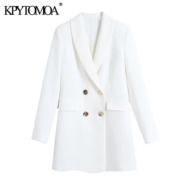 women fashion double-breasted white blazer coat vintage long sleeve pockets female outerwear chic veste femme 210420, White;black