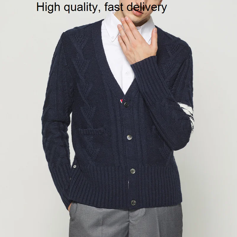 Мужской легкий кардиган TB THOM с круглым вырезом, свитер (доступно в стандарте), высококачественная осенне-зимняя мужская одежда, шерстяной свитер
