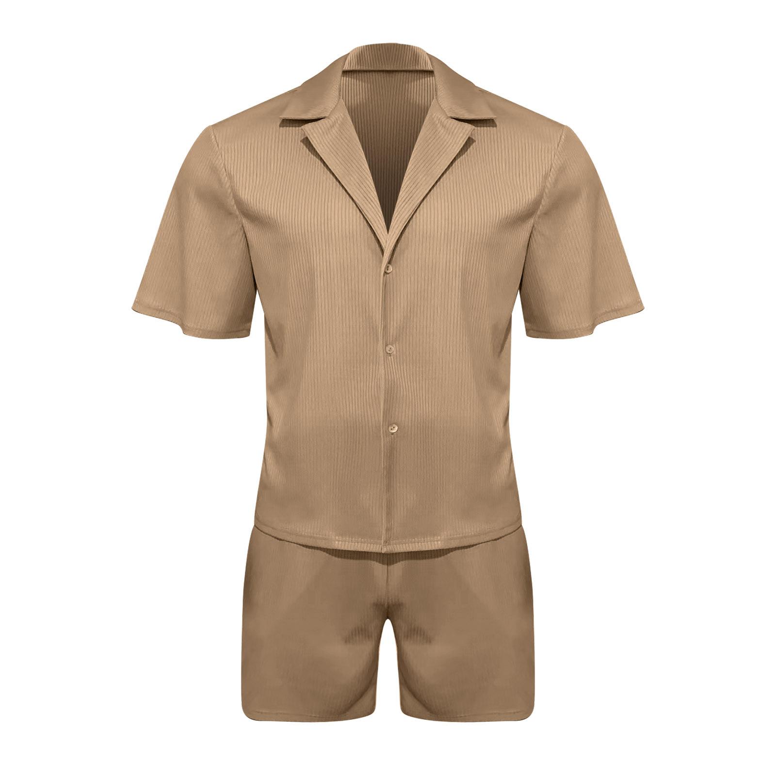 Мужской летний повседневный костюм с коротким рукавом и шортами, комплект из 2 предметов S дубильная кора