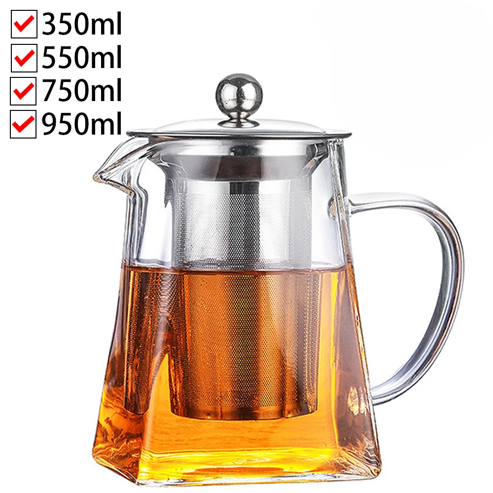 Teapot With Infuser Stainless Steel Tea Filter Flower Tea Kettle Kung Fu Tea Set Droshipping Heat Resistant Square Glass Tea pot