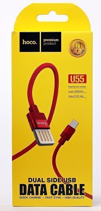 Кабель USB 2.0(Am)-Micro USB 2.0(Bm), 2.4A быстрая зарядка, 1.2м, красный HOCO Outstanding U55, U55