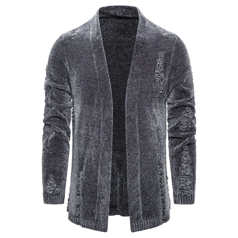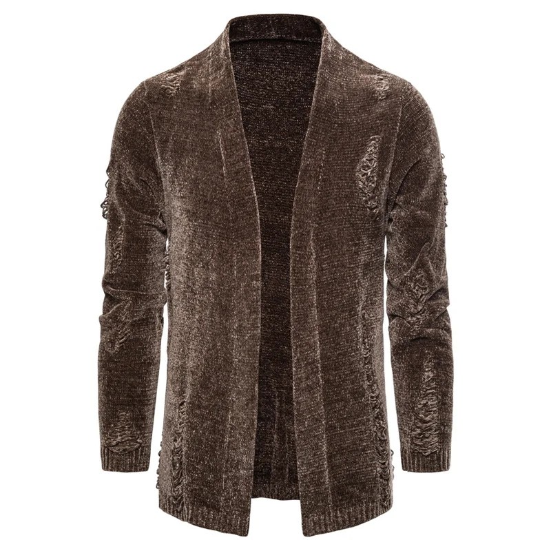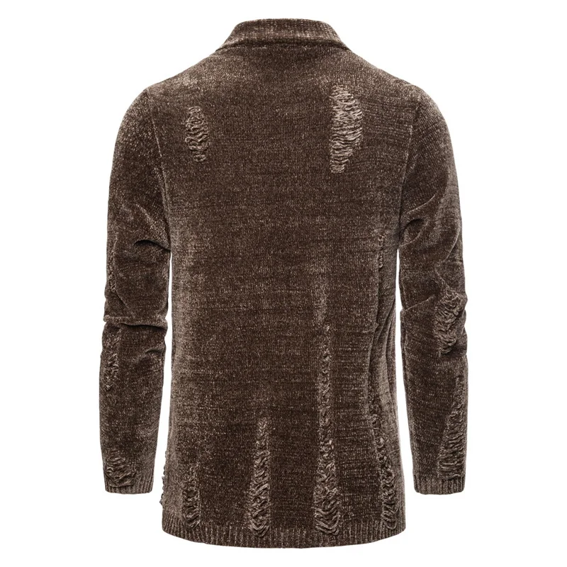 Мужской облегающий кардиган с воротником-стойкой и искусственным мехом